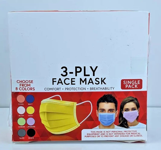 80 Individually Wrapped 3-Ply Disposable Face Mask 8 Colors Facemasks