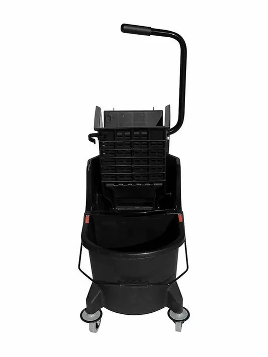Commercial 26 Qt Mop Bucket Black Dual Chamber Metal Casters Wringer Separator