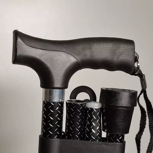 Folding Mobility Cane Gel Grip Adjusts 32” to 36” Brand New Black Silver
