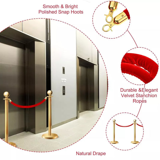 6 Foot Red Velvet Rope 1.2" Thick Crowd Control Barrier Gold Hooks Party Wedding