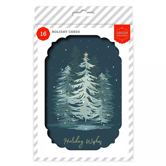 Green Inspired 16ct Evening Forest Tree Holiday/Christmas Greeting Card Pack