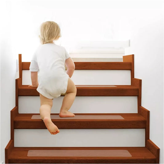 KAKICLAY 15-Piece Clear 6" x 30" PEVA Rubber Non-Slip Stairs Treads with Roller