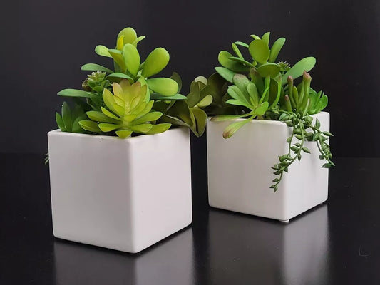 Lot of 2 - Cactus Artificial Succulent Fake Plants Ceramic White Planter Pot 4x4x7